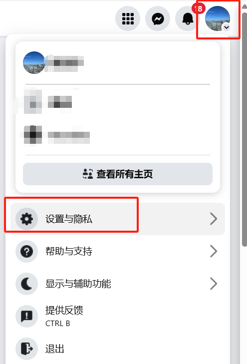 1.点击右上方您的个人号头像,然后点击设置与隐私