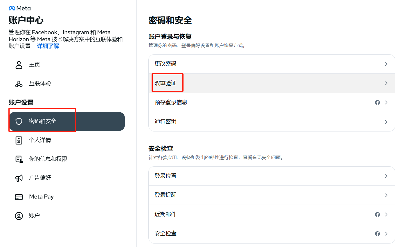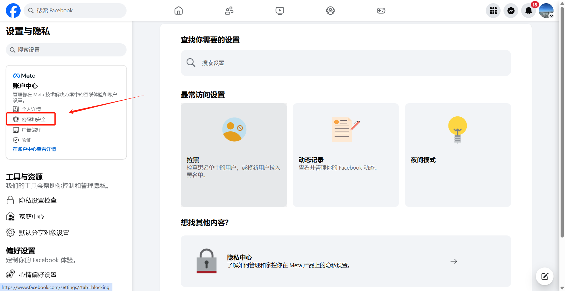 2.点击 设置 → 帐户管理中心,然后点击密码和安全
