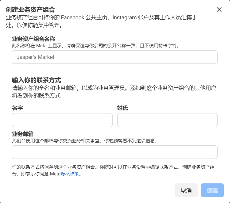 注意:BM名称建议用公司名称或者品牌名称,个人姓名无要求,邮箱建议用Gmail或者企业邮箱;如果提交有报错,换个人号创建BM