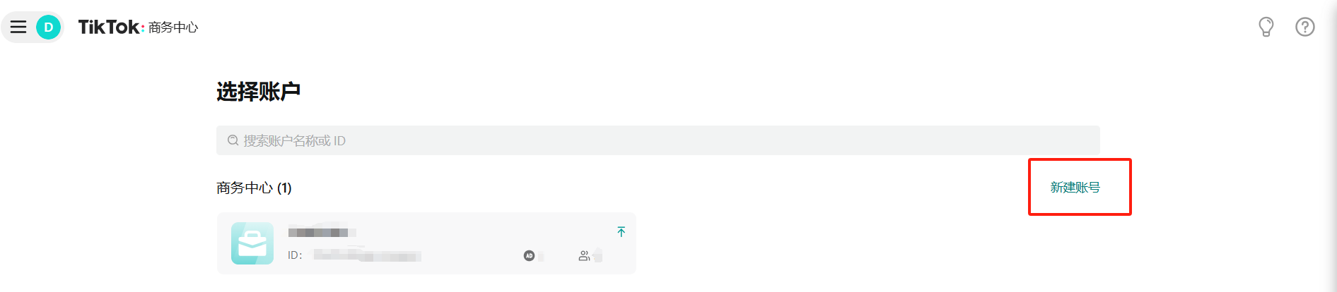 打开链接https://business.tiktok.com/select,点击右上角新建账号